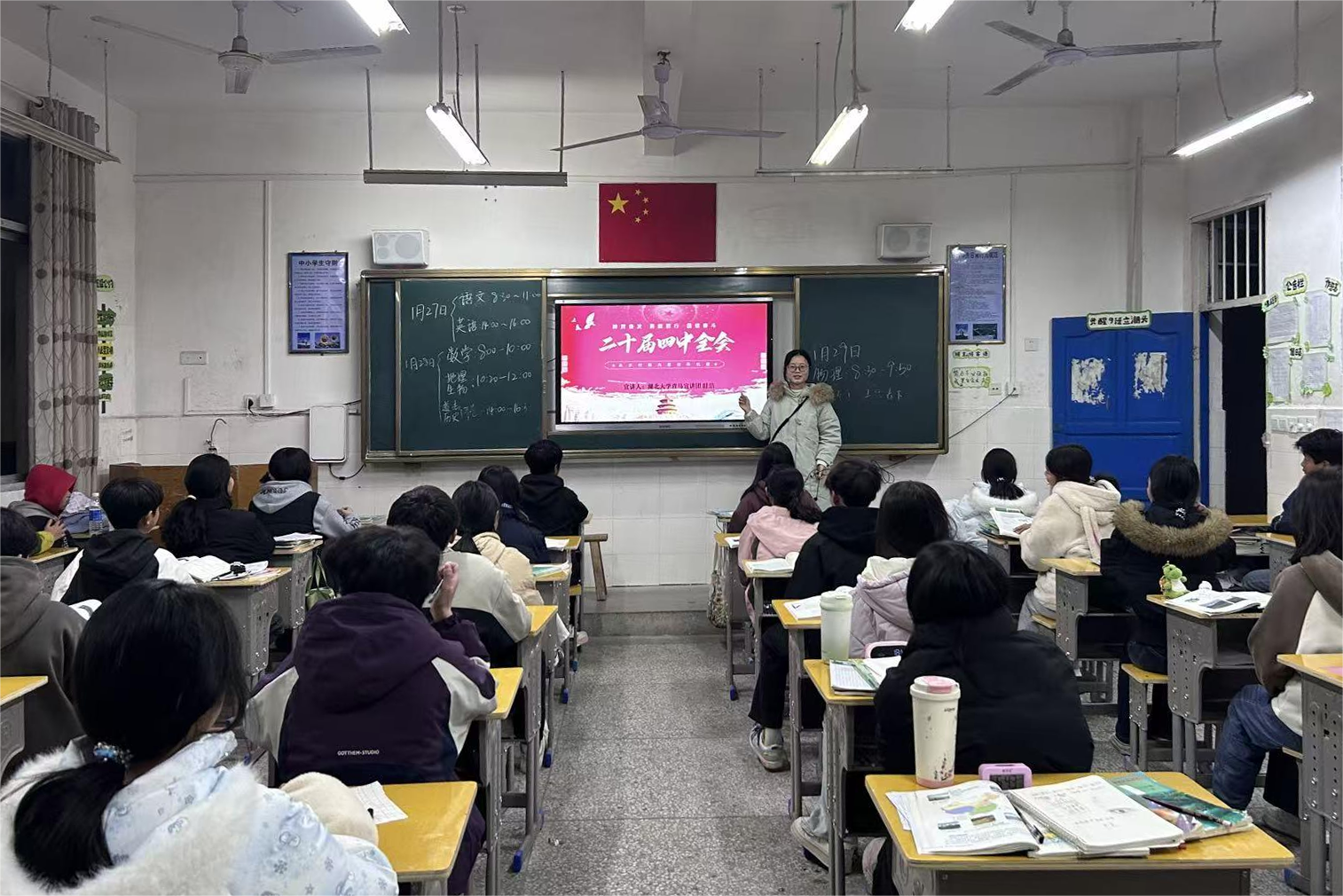 图为团队成员为同学们讲解党的二十届四中全会精神