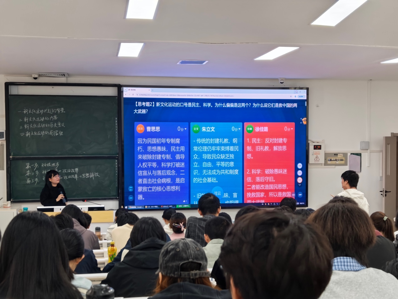 龚梦则围绕新文化运动兴起的背景、内容、历史意义及局限性进行了系统梳理,她运用思维导图清晰地呈现了近代中国先进分子从学习西方技术到仿行西方制度,再到探索思想文化革新的演进过程;讲述了蔡元培在北京大学进行的教育改革实践,以及北京大学如何成为新文化运动的重要阵地。在教学设计上,她通过一系列启发式思考题,帮助学生理清历史脉络,掌握课堂要点。龚梦的教学设计亮点突出,让历史人物从课本中“站”了出来;问题链层层递进,引导学生从被动听讲转向主动思考。